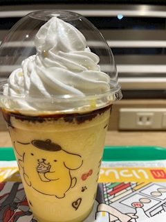 よつばです(* 'ω')ノ マクドナルド🍔🍟で サンリオコラボ中❣️ ポムポムプリン🍮のフラッペ 甘さ控えめで美味しかった😋 可愛い💕💕