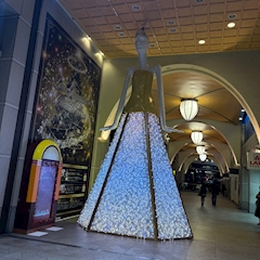 おはようございます☔️ ナナ様もキラキラドレスでイルミネーション✨ ナナ様は名鉄百貨店セブン館のオープン1周年記念にシンボルとして誕生したよ! 百貨店と関係のあるもので探していた時に東京で行われたマネキンの展示会でインパクトのある大きな人形を見つけてそれをマスコットにしたんだとか! 名前は一般公募して当時名前がセブン館だったということから親しみやすい『ナナちゃん』になったんだってー! 52歳! お出かけって表現、なんか好きかわいい笑 そんなナナ様も来年の2月で名鉄百貨店が閉店しちゃうから今の場所にはいられなくなる可能性があるって言われてる どこ行っちゃうんだろう??