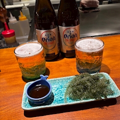 日曜日もお客様とご飯!! 前も一緒に行った沖縄料理のお店に行ってきた! お店がオープンする前に違うお店でも飲んでた!笑 海ぶどう 沖縄といえばオリオンビール🍻 ジーマミ豆腐 もちもちの豆腐大好き🤤 島らっきょ ミミガー だし巻き玉子 目の前の鉄板で作ってくれるんだけどふわふわでおいしかった! ちなみにサイズめちゃ大きい! おいしかった🤤 ご馳走様!! 19時半〜出勤