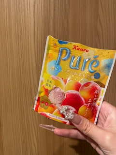 やほほ えなです! 小中高お菓子大好きマンだった🍭🍬🍫🍿🍩 お酒飲むようになってから甘いもの全然食べなくなったんだけど たまーーに食べると美味しいよね🤤 ちなみに小さい頃からいまでも グミは大好き🫶 最近いろんなグミですぎて わけわからないんだけど 果汁グミとかピュレグミとか好き ふわふわ系?のグミはそこまで好みじゃない🧐と思う…。笑 昨日帰りに買ったピュレグミの梅味が美味しかったので それを伝えたくて今日はこの話題にした🤭 気になった人買ってみて😆