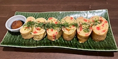 こんばんは、りのです! 出勤しました、よろしくおねがいします! だし巻き卵〜紅しょうが大葉! おいしかった🥹😋