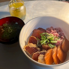 こんばんは🌛みりです! 今日は20:30からいます🙋♀️ 出勤前にごはんつくったよ🍚 お魚だいすきなので サーモンとまぐろを漬けてねぎとろと海鮮丼にした🧑🏻🍳🥣 自分のご飯でも盛り付けは綺麗にしたい派🙂↕️ 見た目って大事😗 次は鍋とか作りたいな〜🧑🏻🍳