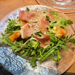 旬のメニューにあった春菊と生ハムのサラダ 春菊って春ってつくのに今が旬なんだって ここで何でだろう?って調べようとした人はわたしと同じだ!笑 19時半〜出勤