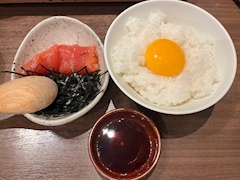 こんばんは、りのです! 今日も🐰コスプレ よろしくお願いします! おいしい卵かけご飯🍚 明太子卵かけご飯!って、つまり卵2種類だなぁ😋