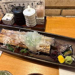お客様のおすすめのお店✨ イカリベンジブログ 槍烏賊姿造り イカいたー!!!! お店の入り口の水槽に泳いでてさっきまで生きてたイカ 透き通ったイカ すだちかけたら動いてた😮! 昨日のブログにも書いたけど 1回このお店に連れてってもらっててお客様おすすめのこのイカがなくてまたリベンジで連れてってもらった! イカなくてもこのお店他のメニューもおいしくて大満足だったからまた連れてってもらえて嬉しいんだけどね😳 ゲソ焼き 残りをゲソ焼きにしてくれるの! どじょうの唐揚げ またどじょう笑 1回目に連れてってもらった時にハマった🥹 2回目連れてってもらった時はおかわりしたもん笑 またこのお店行きたい!! どれもおいしかった🤤 おすすめのおいしいお店も連れてってもらって嬉しい限り!! ご飯もお酒もご馳走様!! たくさん食べて飲んで楽しかった! いつもわたしと一緒に飲んでくれてありがとう!!