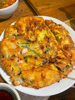 こんばんは! えなです! 昨日はお休みで 韓国料理食べた🇰🇷 メインはチーズタッカルビだったのに いつもよそってから気づくから見栄え悪くて撮れない。笑 てことで海鮮チヂミ🦐 これめちゃ美味しかった🤤 定期的に韓国料理食べたくなるから 次はいい感じの写真撮る(*•̀ᴗ•́*)👍