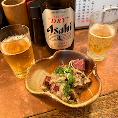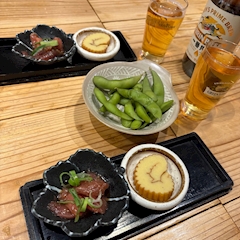 金曜にハシゴした続き🪨 1軒目は串かつのお店! https://sp.pokepara.jp/aichi/m201/a202/shop2180/gal/369780/blog/diary_39817884.html って思いきや2軒目も串かつ!笑どて焼き どて焼きの食べ比べできた🤤 汁ないし全然違った! 2軒目も瓶ビールは2本で抑えたよ!🍻 串かつ、大粒牡蠣 1軒目とは衣が全然違った!白せんまい 白せんまいを見つけてて2人してここのおいしい!ってなってなぜか串かつのお店でおかわり笑 そして3軒目は海鮮のお店でサラッとね🍻 サーモンとまぐろのお造り 梅酒! 4軒目も干物のお店でサラッと🍻かつおの塩たたき ここで飲んだ紅しょうがサワーおいしかった! そして最後にたこ焼き! 何回も来てるのにやっとたこ焼き食べれた笑 とろとろたこ焼きおいしかった🤤 ここでも梅酒! 明石焼き 初めてちゃんとした明石焼き食べた! 帰りにはお店で食べる用にスイーツも買ってくれた😳 1日中とっても楽しかった! ご飯見てわかる通り年始から大阪に連れてってくれた! 本当にたくさんご馳走様!! 明日も次の日のハシゴで行ったお店載せる笑 わたしと一緒に飲んでくれてありがとう!! 19時半〜出勤